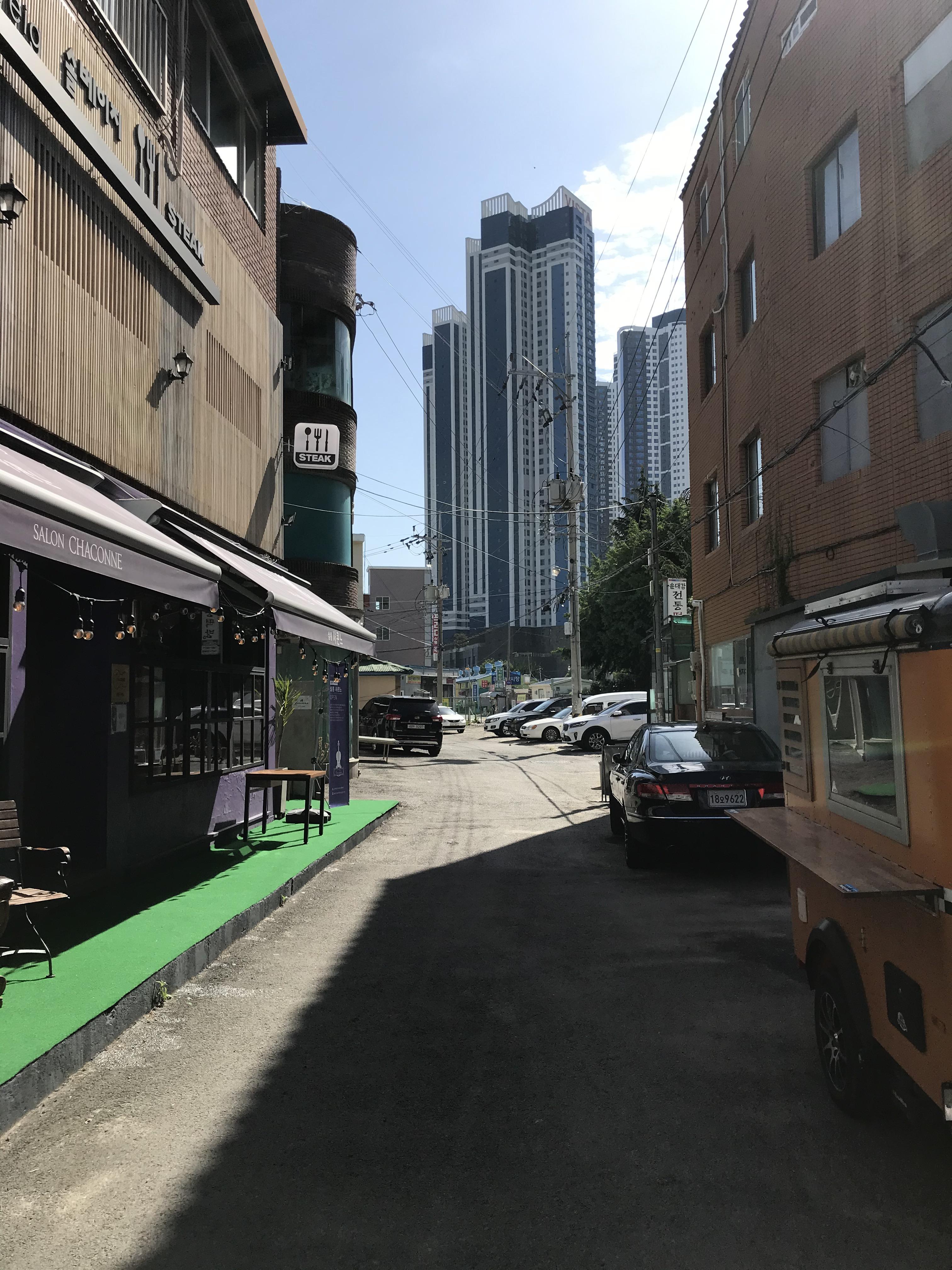 번화한 도시 속 해리단길의 골목골목을